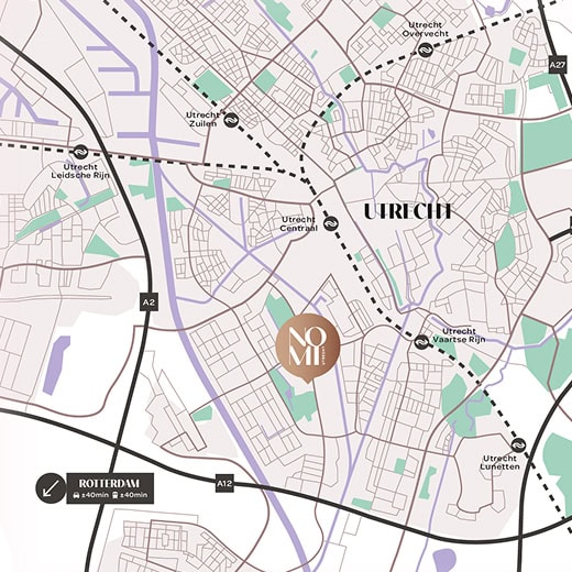 NOMI ligt op een toplocatie aan de Europalaan, op het kruispunt van stadse levendigheid, goede bereikbaarheid en ontspanning. Je fietst in 5 minuten naar de grachten van Utrecht, het hippe Rotsoord of het toekomstige Merwedekanaalgebied. Je pakt zo de tram of rijdt vanuit de parkeerkelder in no time de A12 op. Of draai je om en je staat midden in de groene oase van Park Transwijk – ideaal voor een ochtendrun, een picknick of gewoon even niets. NOMI ligt tussen alles in. Hier woon je kleinschalig, maar mídden in een wijk die vooruitkijkt en groeit.
